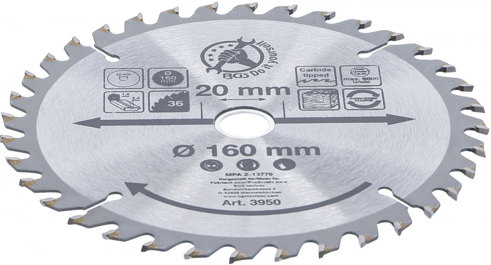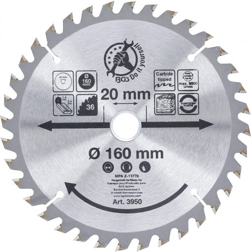 BGS DIY Karbid hegyű körfűrész tárcsa, 160 x 20 x 2.4 mm, 36 fogú (BGS 3950)