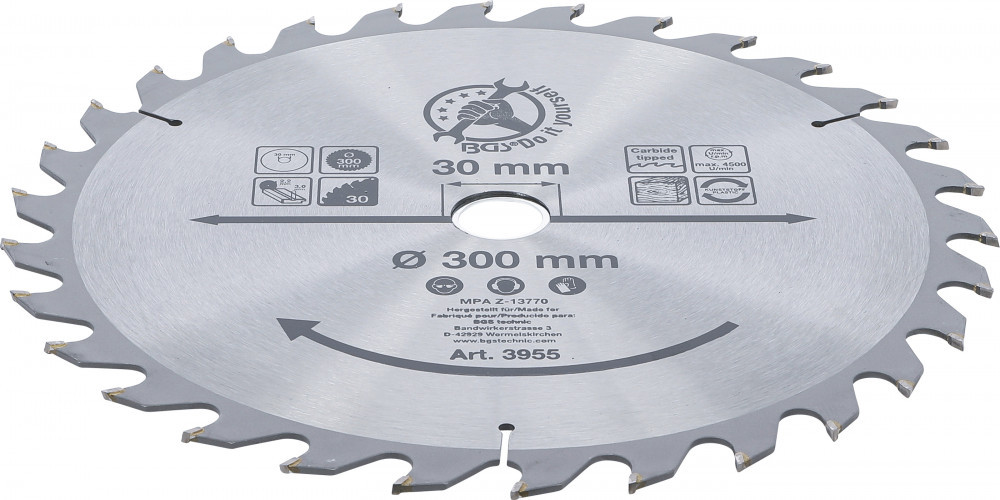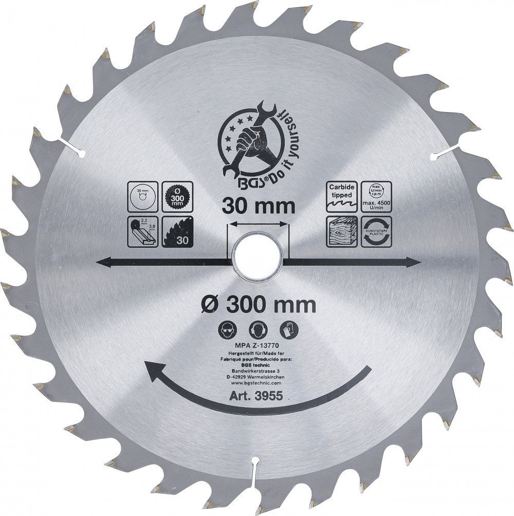 BGS DIY Karbid hegyű körfűrész tárcsa, 300 x 30 x 3.2 mm, 30 fogú (BGS 3955)