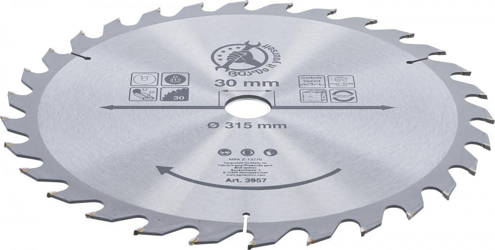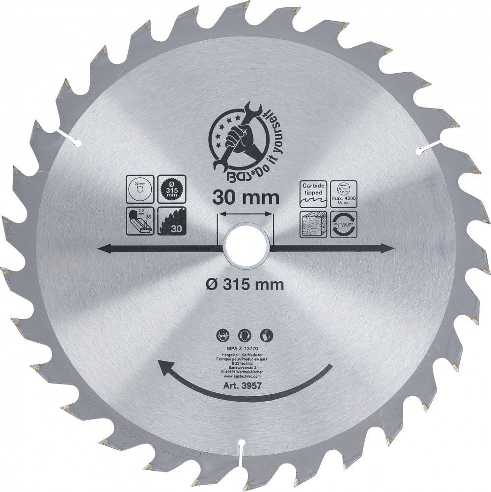 BGS DIY Karbid hegyű körfűrész tárcsa, 315 x 30 x 3.0 mm, 30 fogú (BGS 3957)