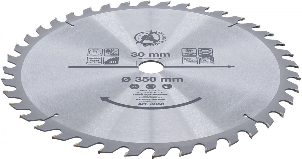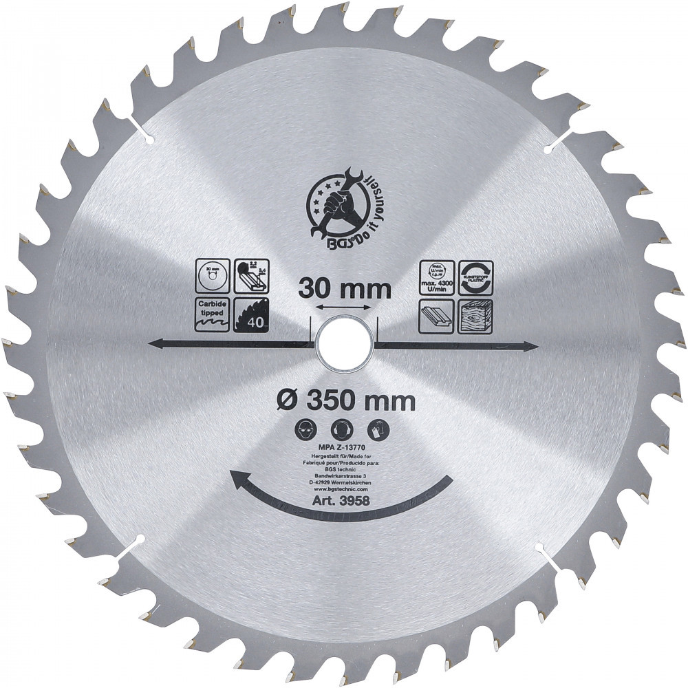 BGS DIY Karbid hegyű körfűrész tárcsa, 350 x 30 x 3.4 mm, 40 fogú (BGS 3958)