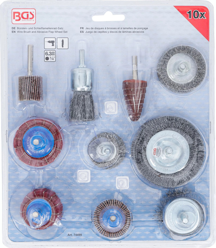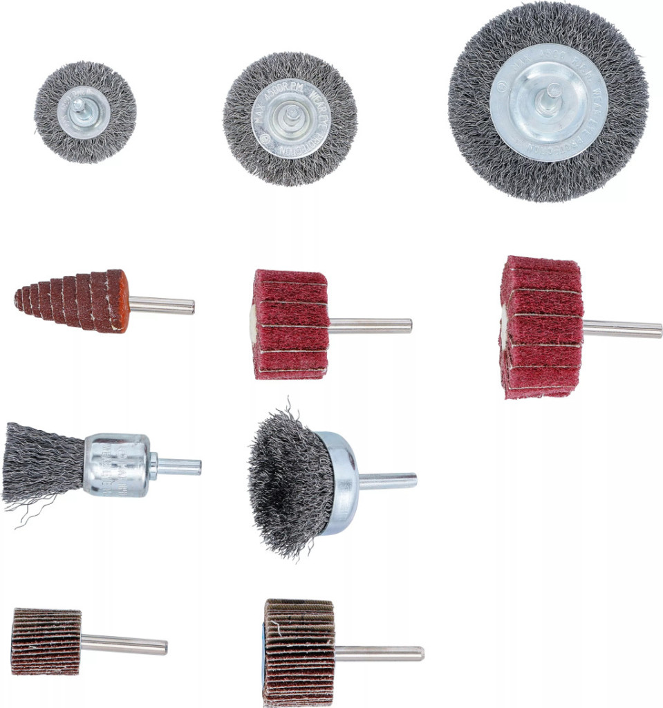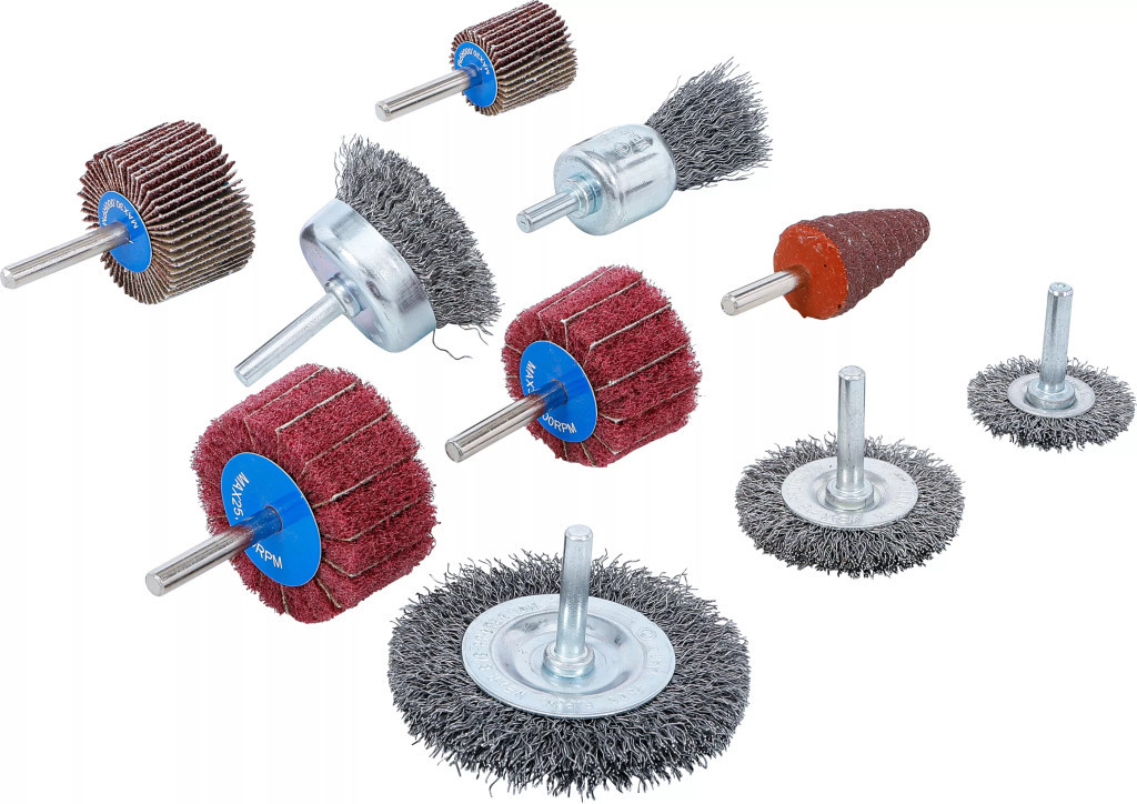 BGS technic Drótkefe- és lamellás csiszoló kerék készlet | 10 darabos (74499)