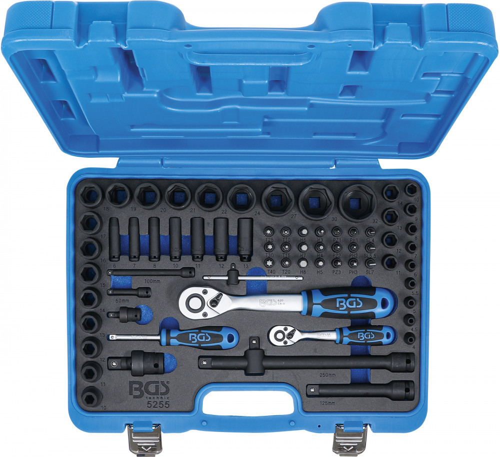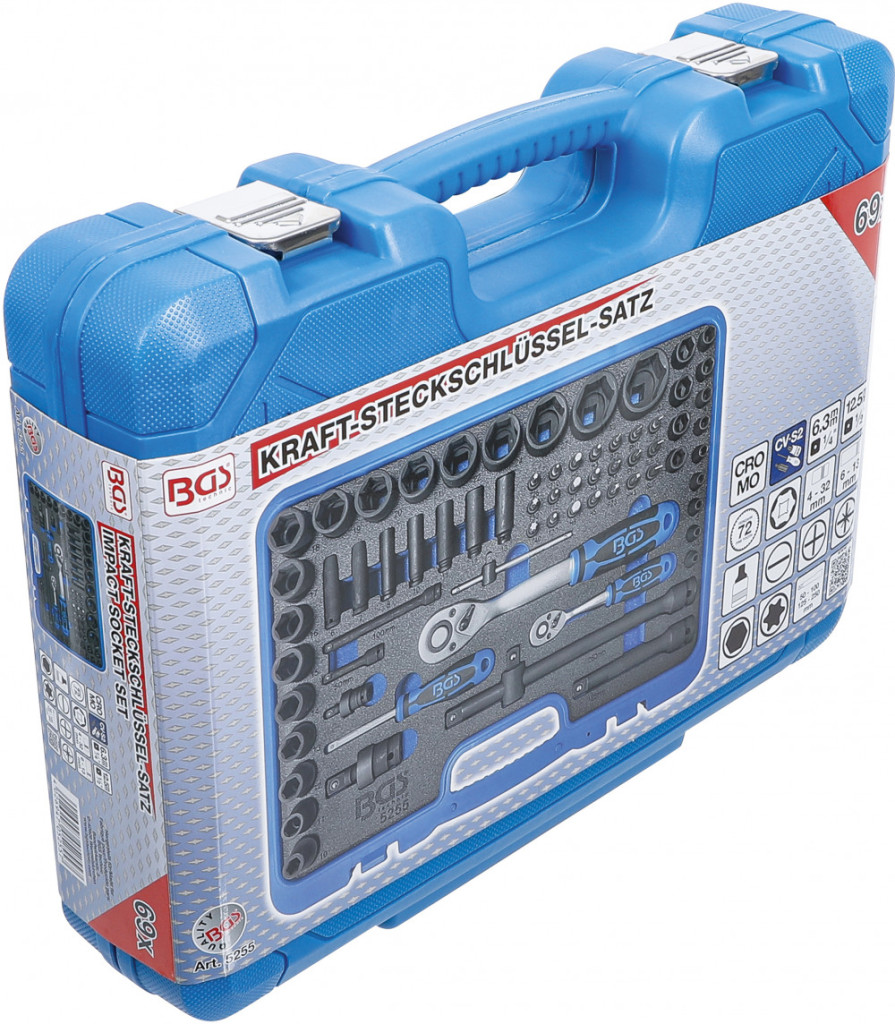 BGS technic Dugókulcs készlet levegős 1/4" + 1/2" 69 részes (BGS 5255)