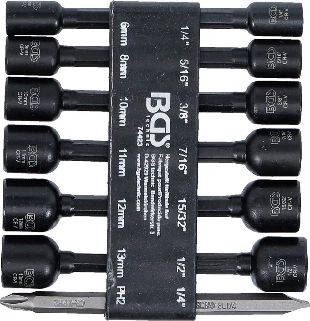 BGS technic Dugókulcskészlet, hatszögletű | Külső hatszögletű 6,3 mm (1/4") | Fúrógépek | 1/4 - 1/2", 6 - 13 mm | 14 darabos (74423)