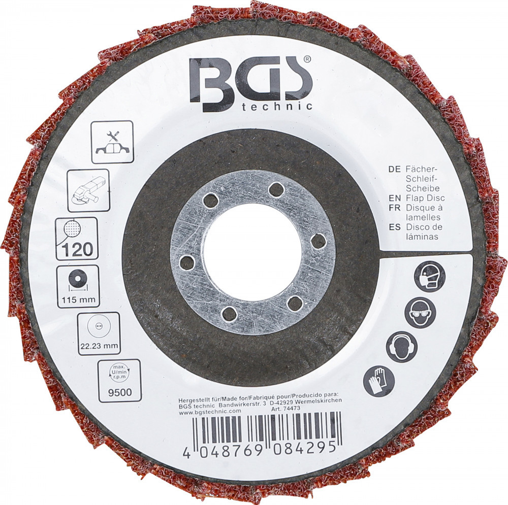 BGS technic Legyező alakú csiszolótárcsa | Flíz | Ø 115 mm | 120-as szemcsefinomság (BGS 74473)