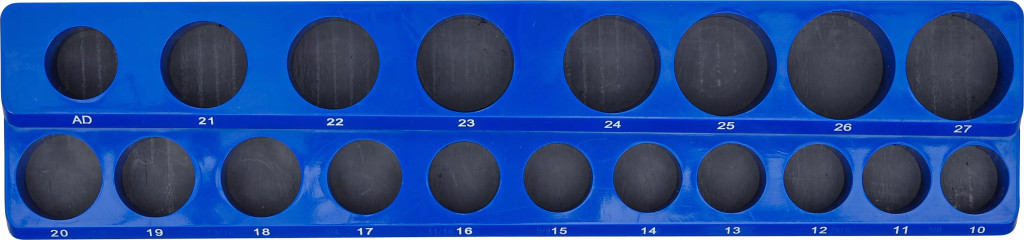 • intelligens és praktikus megoldás metrikus dugókulcsbetétek tárolására