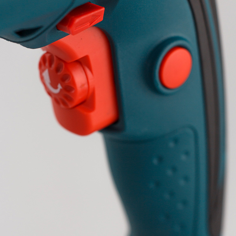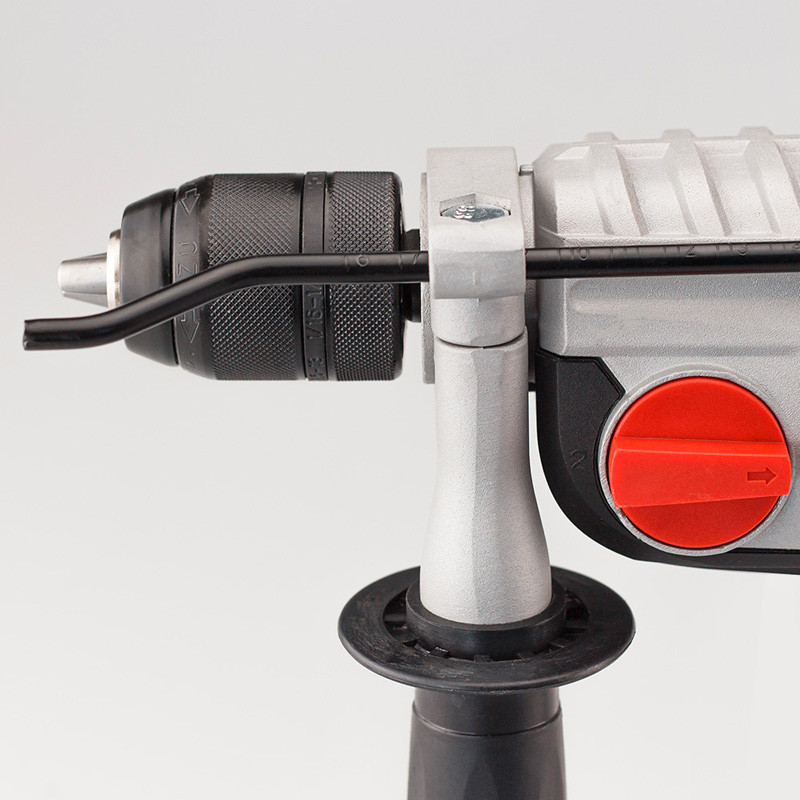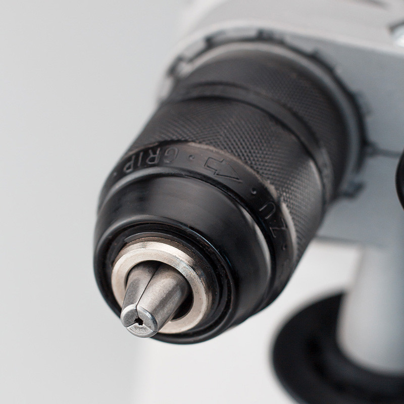 Erős motor alumínium házzal. Felszerelve változtatható sebességű ravasz kapcsolóval, mely rendelkezik aktiválási zárral a hosszan tartó működés és sebességszabályozás érdekében. A fém mélységvezető segít a kívánt ponton történő fúrásban. Fém automata tokmánnyal van ellátva a gyors fúrófej cseréhez és állítható oldalsó fogantyúval, amely a nehéz körülmények közötti jobb kihasználás érdekében mozgatható.