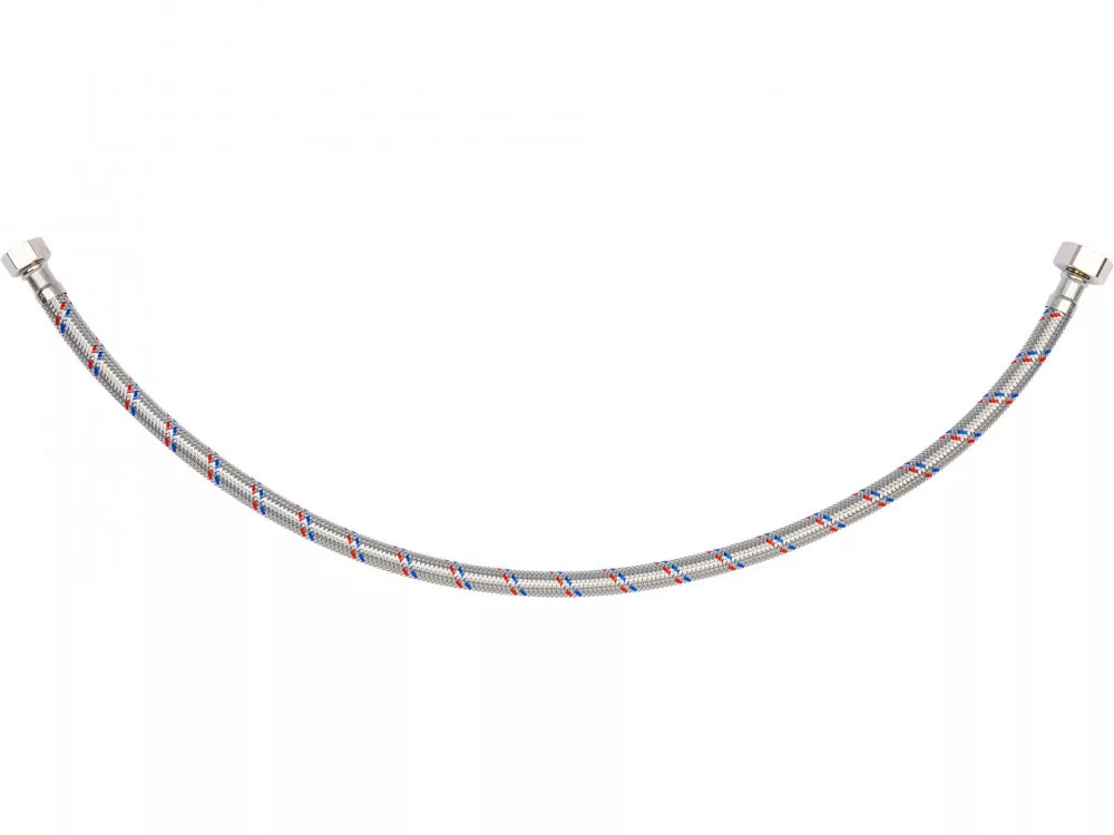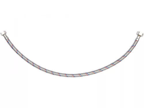 Rugalmas, rozsdamentes acél fonott csatlakozótömlő. Hideg és meleg vízhez készült. PZH tanúsítvánnyal rendelkezik az ivóvízzel való érintkezésre. Hossza 600mm. Max nyomás 1MPa. Max hőmérséklet 90st C. Átlagos áramlási sebesség 32L/min. Belső átmérője 8mm, külső átmérője 12mm. Csatlakozó menet: anya 1/2" x anya 3/8". Gumitömlő EPDM gumiból, nikkelezett sárgaréz csatlakozók, EPDM gumi tömítés.