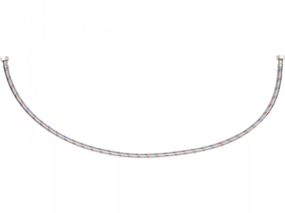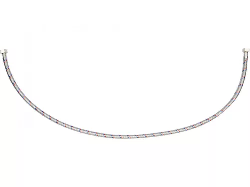 Rugalmas csatlakozótömlő csaptelepekhez fonott rozsdamentes acélból. Hideg és meleg vízhez készült.