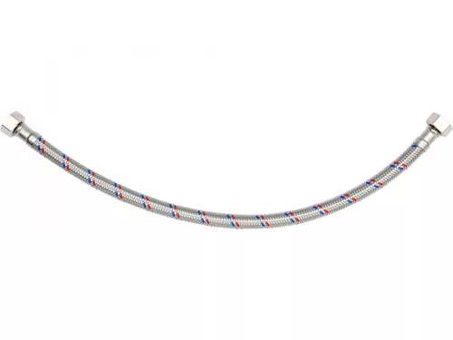 Rugalmas, rozsdamentes acél fonott csatlakozótömlő. Hideg és meleg vízhez készült. A PZH jóváhagyta az ivóvízzel való érintkezésre. Gumitömlő EPDM gumiból, sárgaréz csatlakozások nikkelezett, EPDM gumi tömítés.