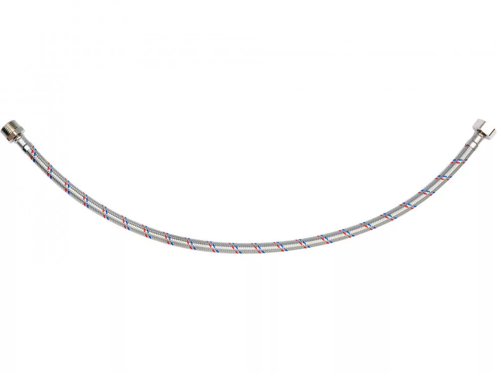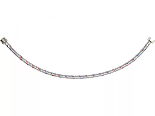 Rugalmas, rozsdamentes acél fonott csatlakozótömlő. Hideg és meleg vízhez készült. PZH tanúsítvánnyal rendelkezik az ivóvízzel való érintkezésre. Hossza 600mm. Max nyomás 1MPa. Max hőmérséklet 90st C. Átlagos áramlási sebesség 32L/min. Belső átmérője 8mm, külső átmérője 12mm. Csatlakozó menet: anya 1/2" x apa 1/2". Gumitömlő EPDM gumiból, nikkelezett sárgaréz csatlakozók, EPDM gumi tömítés. WC-tartályok vagy szelepek csatlakoztatására szolgál.