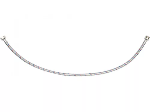 Rugalmas csatlakozótömlő csaptelepekhez fonott rozsdamentes acélból. Hideg és meleg vízhez készült.