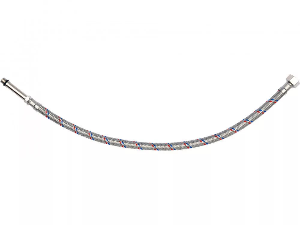 Rugalmas, nemesacél fonott csatlakozótömlő csaptelepekhez. Hideg és meleg vízhez készült.