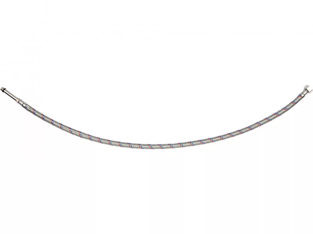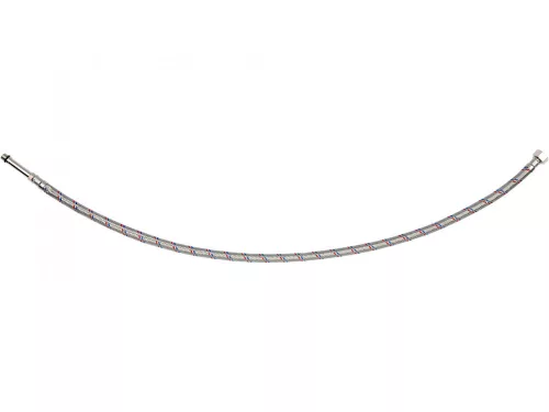 Rugalmas, nemesacél fonott csatlakozótömlő csaptelepekhez. Hideg és meleg vízhez készült. A PZH tanúsítja, hogy ivóvízzel érintkezik. Hossza 800 mm. Max nyomás 1MPa. Max hőmérséklet 90st C. Átlagos áramlási sebesség 32L/min. Belső átmérője 8mm, külső átmérője 12mm. Csatlakozómenet: anya 3/8" x apa M10 (50mm hosszú). Gumitömlő EPDM gumiból, nikkelezett sárgaréz csatlakozók, EPDM gumi tömítés.