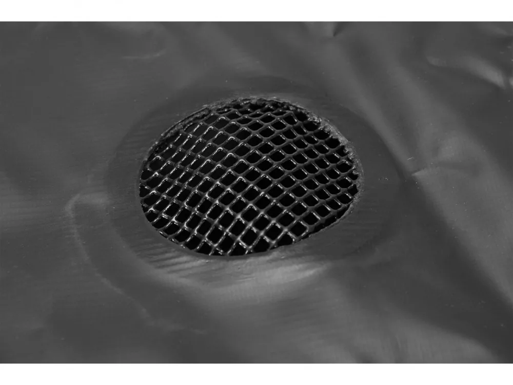 Összecsukható, rugalmas esővíztartály beépített szűrővel és túlfolyószeleppel.