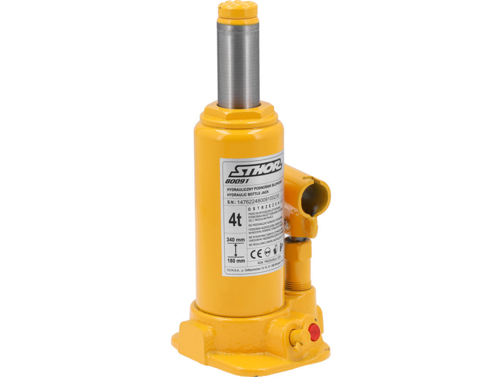 A STHOR 80091 típusú hidraulikus palackemelő kompakt méretének és kis súlyának köszönhetően ideális választás autószerelők, szervizek és otthoni garázsok számára.