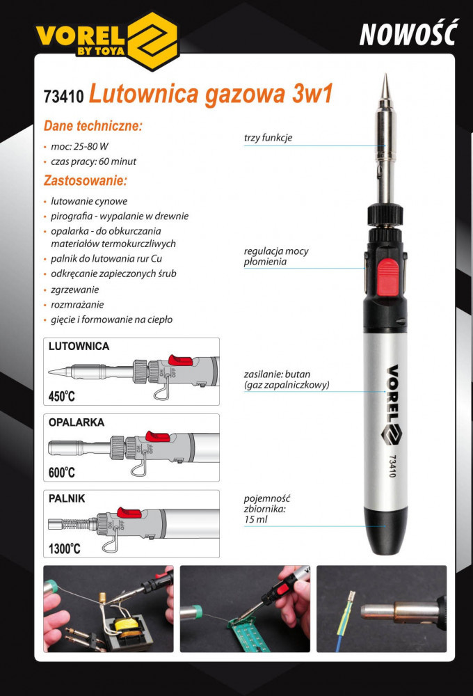 VOREL Gáz forrasztás 3 az 1-ben berendezés (73410)