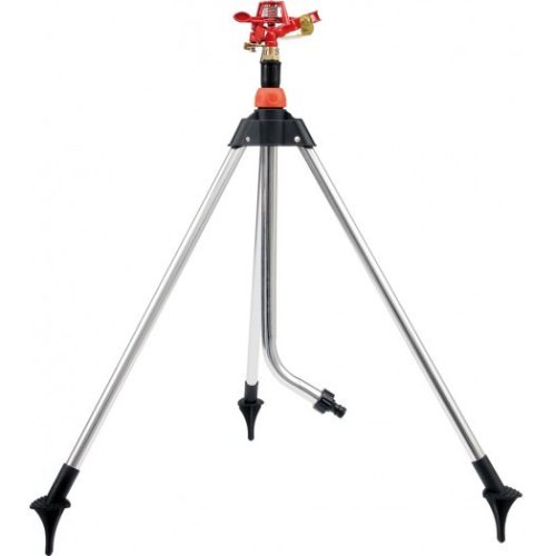 Forgószóró, pulzáló. Alumínium állvány ABS elemekkel, háromlábú, amely biztosítja a készülék egyenSúlyát. Lábak, amelyeknek a lába a földbe döngölhető. Állítható magasság 65 és 93 cm között. A locsoló 45 és 360 fok között működik. Gyorscsatlakozóval és záródugóval felszerelve. A szórófej maximális átmérője 24 m.