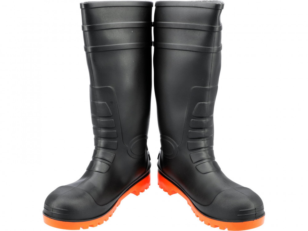 A Portland S5 sorozat munkavédelmi csizmái ütésálló fém orrmerevítővel és átszúrás elleni betéttel, amely védi a lábat a szúrásoktól. A szerkezet és a csizma anyagai garantálják a vízállóságot. Alapvető adatok: felső anyag: PVC talp anyag: PVC lábvédelmi kategória: S5 csúszásállóság: SRA talp ellenállása: 1100 N a sarok alatti ütéscsillapítás csökkenti a láb fáradtságát hosszú távú járás során olajálló, antisztatikus és csúszásmentes talp barázdákkal. További információk: a csizma orr részén, a lábujjak felett fokozott kopásállóság növeli az élettartamot. A jól tervezett sarokrész lehetővé teszi a másik cipővel való könnyű levételt. Az anyagok és a kivitelezés garantálják a vízállóságot, megfelelnek az EN 20345 szabvány követelményeinek.