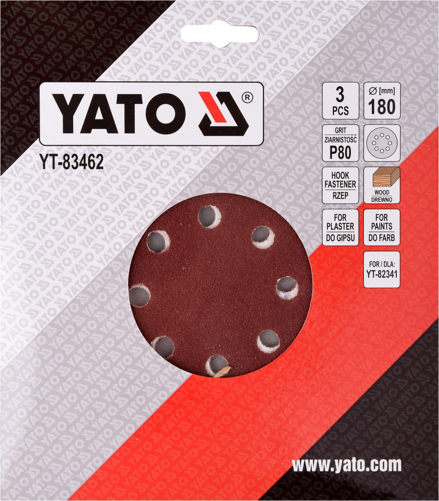YATO Fíbertárcsa tépőzáras 180 mm P80 (3 db/cs) (YT-83462)