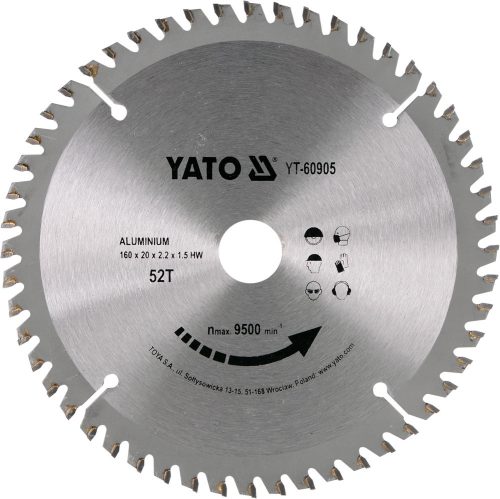 YATO Fűrésztárcsa Alumíniumhoz 160x52Tx20 mm (YT-60905)