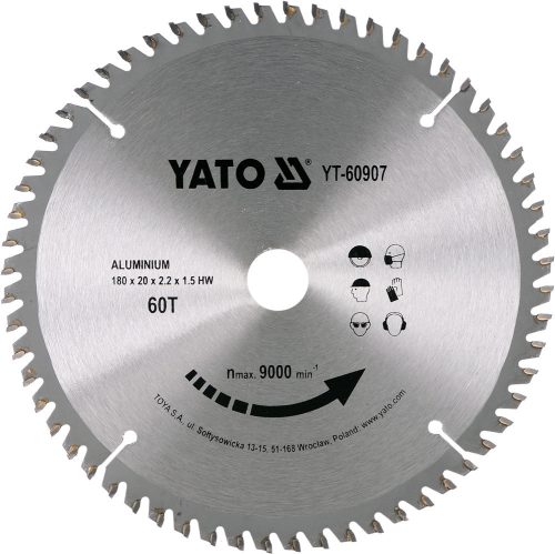 YATO Fűrésztárcsa Alumíniumhoz 180x60Tx20 mm (YT-60907)