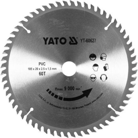 YATO Fűrésztárcsa PVC-hez 185 x 20 x 1,5 mm / 60T (YT-60627)
