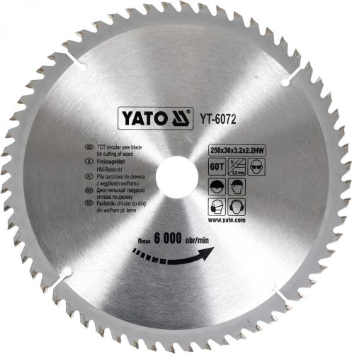 YATO Fűrésztárcsa fához 250/30/60 (YT-6072)