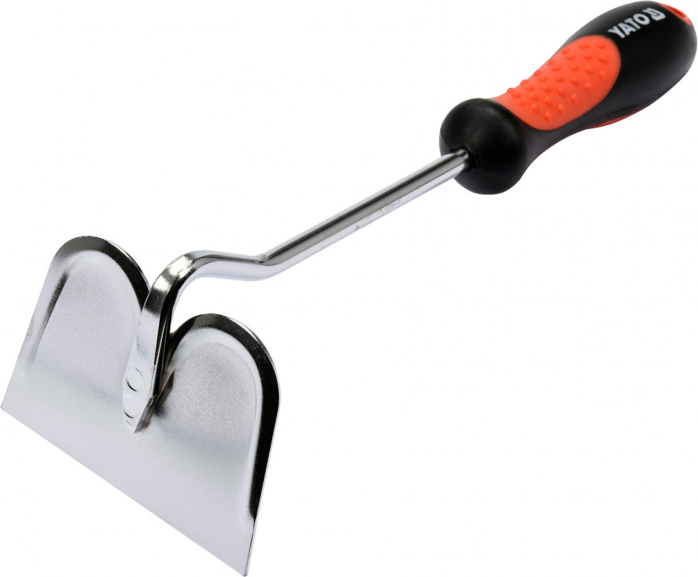 Krómozott acél kapa 280 mm munkaszélességgel. Rövid, kényelmes markolattal ellátott markolatra szerelve. Alkalmas tisztítási és kertészeti munkákhoz, pl. lazításhoz, talajfeltöréshez, kapáláshoz, gyomláláshoz, levegőztetéshez és sűrűn beültetett növények ápolásához.