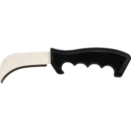 2Cr13 acélból készült kampós pengéjű kés műanyag markolattal. Teljes hossz 230 mm penge-90 mm . Alkalmas számos háztartási felhasználásra a műhelyben és otthon. Leginkább papír vagy fólia vágására használják.