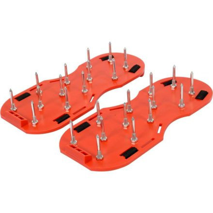 A talp műanyagból készült. Vastagság 6 mm, hossz max. 30 cm, szélesség max. 13,5 cm. 40 mm magas sarokrögzítővel rendelkezik, megakadályozza a cipő elcsúszását. A talpba 13 db 6 mm-es tüske van becsavarva, felső részben menetesek és anyával rögzítve. A talp alatti tüskék magassága 45 mm. Kivágásokkal is rendelkezik a rögzítőpánt sarok és lábujj felőli rögzítéséhez. A készlet két műanyag csattal ellátott textil övet tartalmaz, az övek hossza kb. 50 cm, szélessége 25 mm. A talpak szabad mozgást biztosítanak betonesztrichek vagy padlók készítésekor. A cipők nem hagynak benne mély nyomokat és megakadályozzák a csúszást.Kertészeti munkákban is használják a pázsit levegőztetésére.