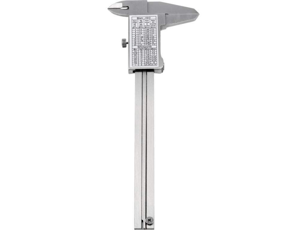 Rozsdamentes acél tolómérő hosszúság, magasság, mélység, valamint belső és külső átmérők mérésére. Lehetővé teszi a 0–100 mm-es tartományban történő mérést, 0,05 mm pontossággal. A jól látható és könnyen leolvasható skála biztosítja a precíz mérést és a kényelmes használatot.