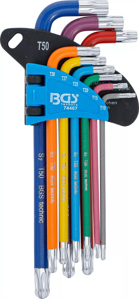BGS technic Derékszögű kulcs készlet | több színű | T-profil (Torx) gömbfejes T10 - T50 | 9 darabos (74467)