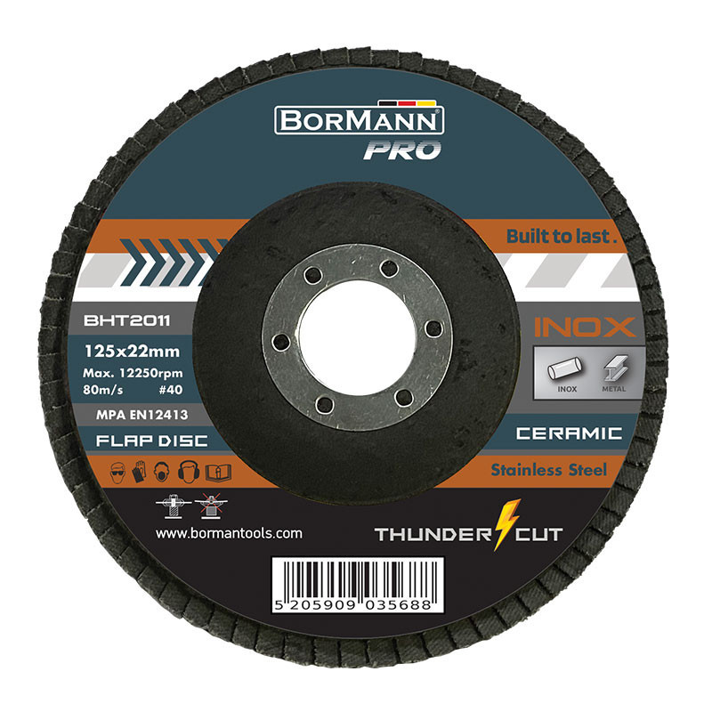 BORMANN Pro Csiszolókorong ''THUNDER-CUT" INOX KERÁMIA PENGÉKKEL Φ125x22 #40 (BHT2011)