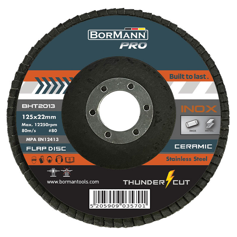BORMANN Pro Csiszolókorong ''THUNDER-CUT" INOX KERÁMIA PENGÉKKEL Φ125x22 #80 (BHT2013)